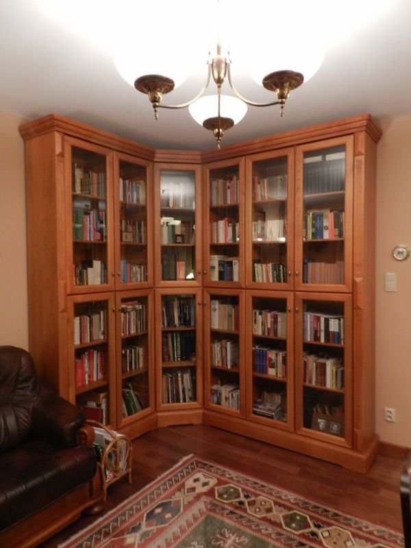 Biblioteka narożna, regał - czereśnia .